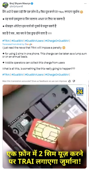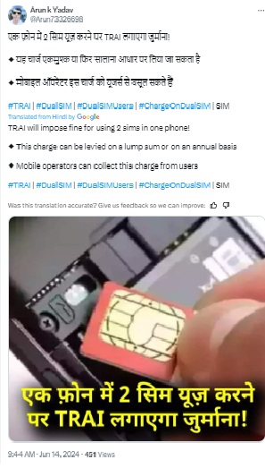Viral claims stating the mobile phone users will be charged extra for using two SIMs in one device found to be misleading and a misinterpretation of media reports on a TRAI proposal.