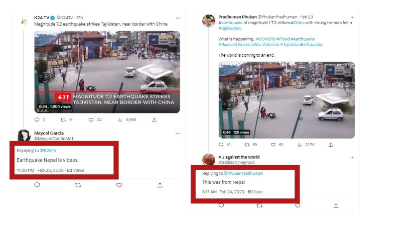 On scanning through the comment sections of the posts carrying the viral footage, we spotted several users pointing that the clip is actually from Nepal, and not Tajiskatn.