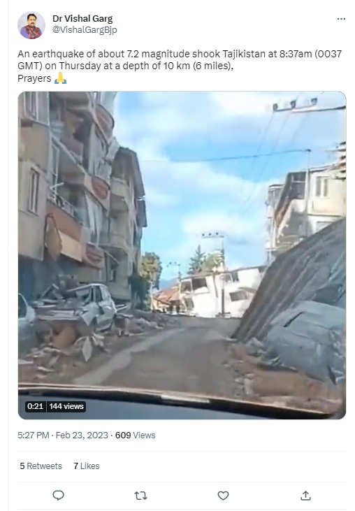 Hence, a video from Hatay, Turkiye is being shared to show the aftermath of the recent earthquake in Tajikistan.