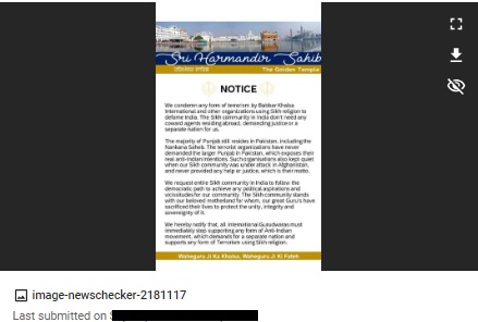 Viral notice, allegedly issued by the Golden Temple, condemning the “anti-India” movement by certain “terrorist” organisations, was found to be fake.