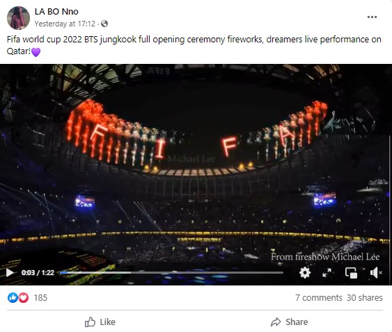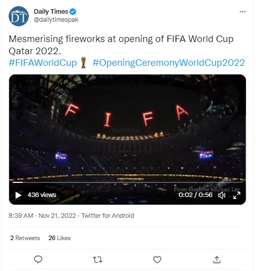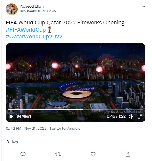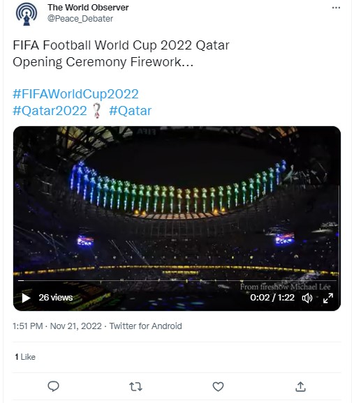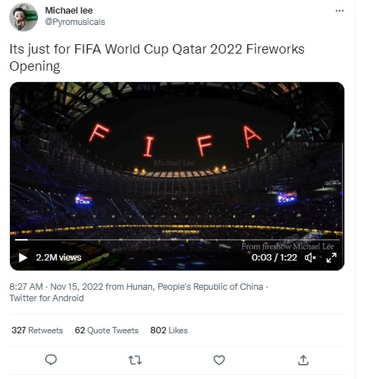 Posted by one Michael Lee, the description of the YouTube video read, ‘Its just for FIFA World Cup Qatar 2022 Fireworks Opening Ceremony. (sic)’