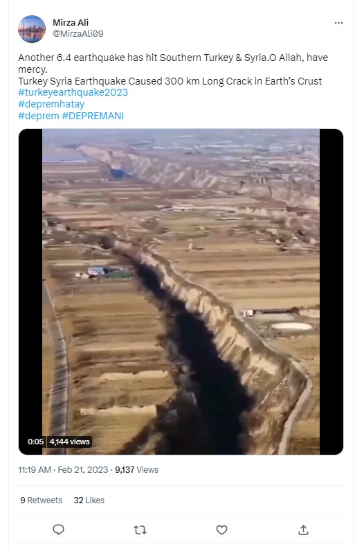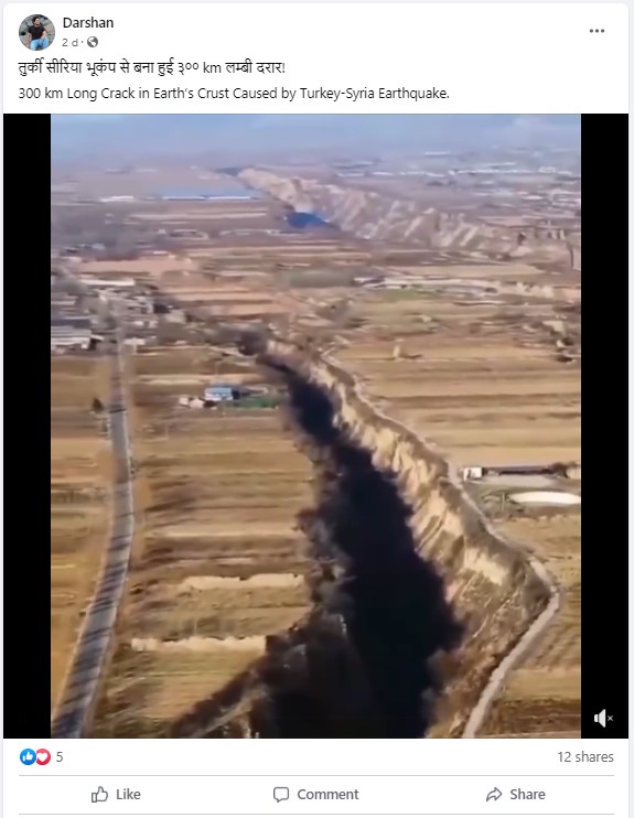 Several Facebook and Instagram users also shared the footage claiming to show fissures on Earth’s surface after the recent earthquakes in Turkiye.
