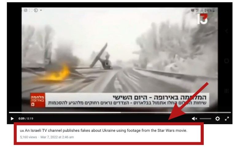 Taking a clue, we conducted a keyword search for “Israel Channel,” “Star Wars,” & “Ukraine” on Google which yielded multiple reports from March 2022 elaborating on the goof up by the Israeli TV channel while reporting on the Russian invasion of Ukraine.