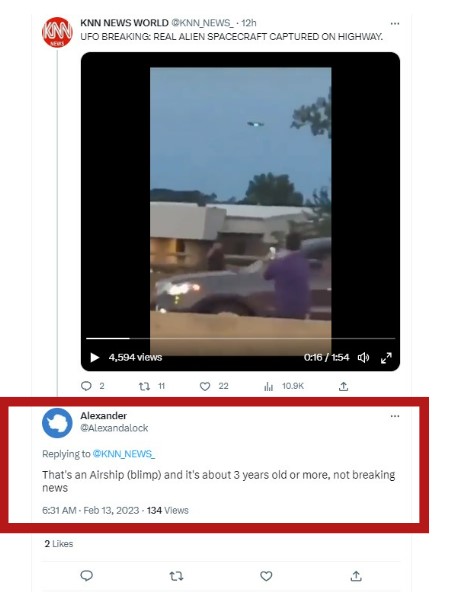 On scanning through the comment section of posts carrying the viral footage, we noticed that users have pointed out that a “blimp” is being misidentified as the “UFO.” Further, we noticed that the viral clip is a combination of three different videos, and decided to fact check them one-by-one.