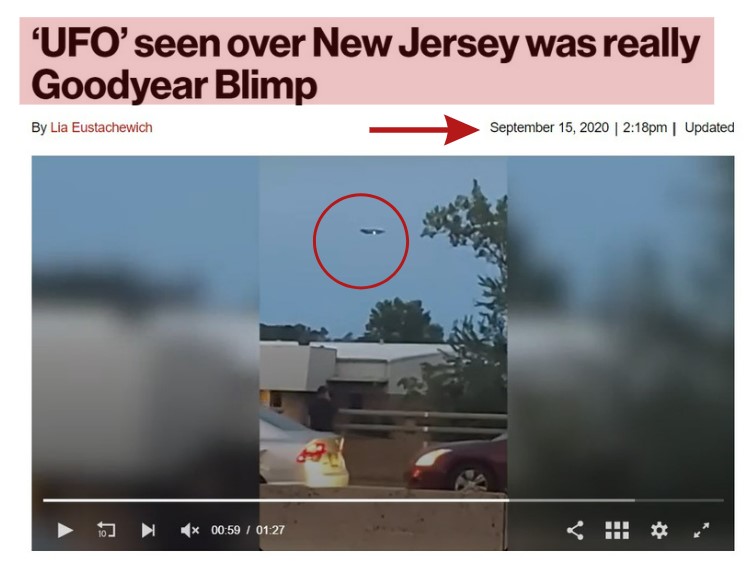 Following this, we looked up “New Jersey,” “UFO” & “Blimp” on Google which yielded a report by the New York Post, dated September 15, 2020. Carrying the viral footage, the report stated, “An unidentified flying object in the skies of New Jersey Monday had residents believing aliens were about to beam down to the Garden State until it was actually identified — as a Goodyear Blimp.”