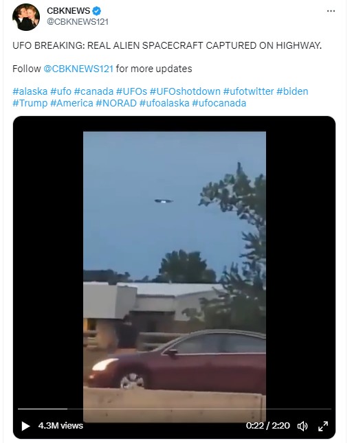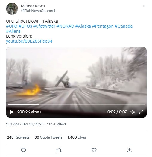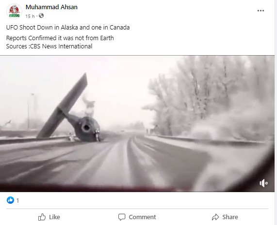 Several Twitter and Facebook users shared the video to show the “UFO shot down in Alaska”