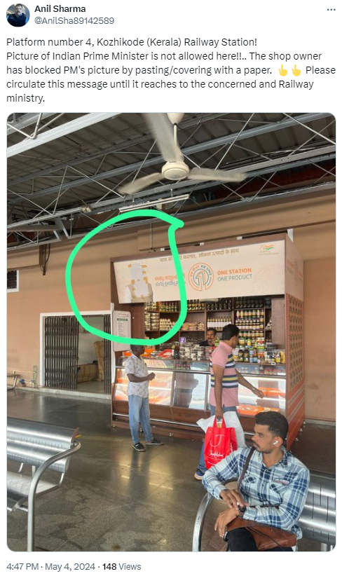 We could thus conclude that a photo of PM Modi at the Kozhikode railway station hidden in accordance with the Election code of conduct has been shared out of context.