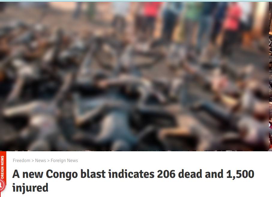 According to the report, the picture is from an incident in which a fuel tanker exploded in Eastern Congo in which at least 230 people died and 1,500 others were injured.