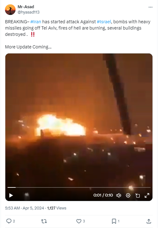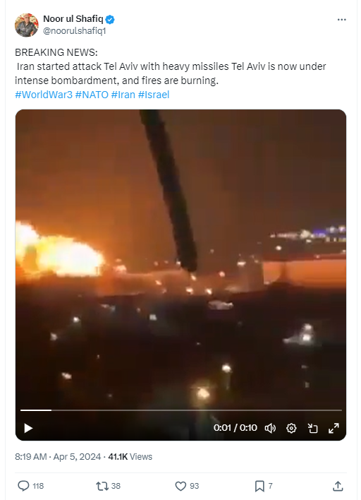 The 10-second-long-footage is doing the rounds on X with users alleging that Iran has launched an attack on Israel.