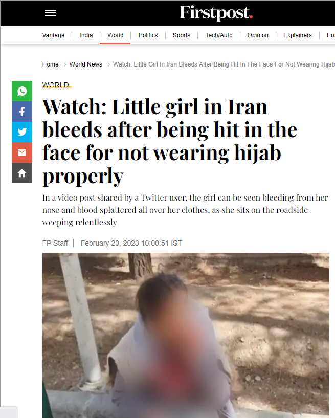 One such video tweeted by a verified user Jyotjeet, shows a bleeding Iranian girl being consoled by others. The caption reads, “Disgusting: This little Girl in Islamic Republic of Iran was brutally Attacked just bcoz she was not fully covering her hair with Hijab. Bloody Monsters. The little Girl is crying in extreme pain”. Newschecker has found the claim to be untrue.