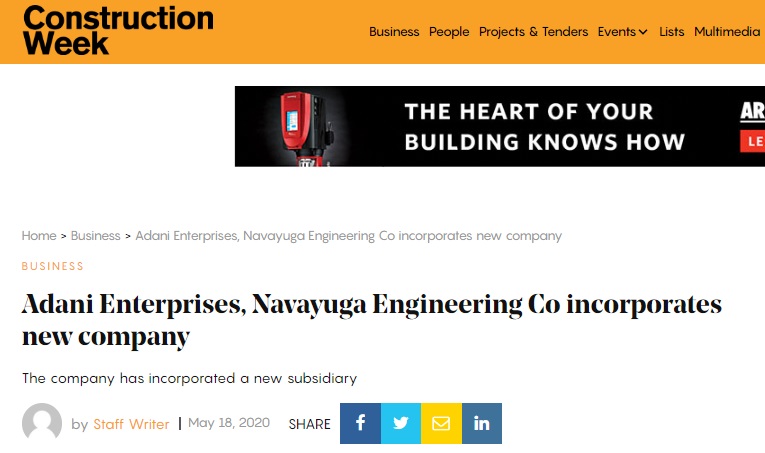 We looked up the Navayuga Engineering Company’s website and its board of directors page, where we did not find any mention or connection with the Adani Group. “Navayuga Engineering Company Limited (NEC), the flagship company of the Navayuga Group, is an engineering and core infrastructure company that has carved a formidable position for itself in the industry,” read the bio on the company’s website, stating that its chairman was CV Rao and its managing director C Sridhar.