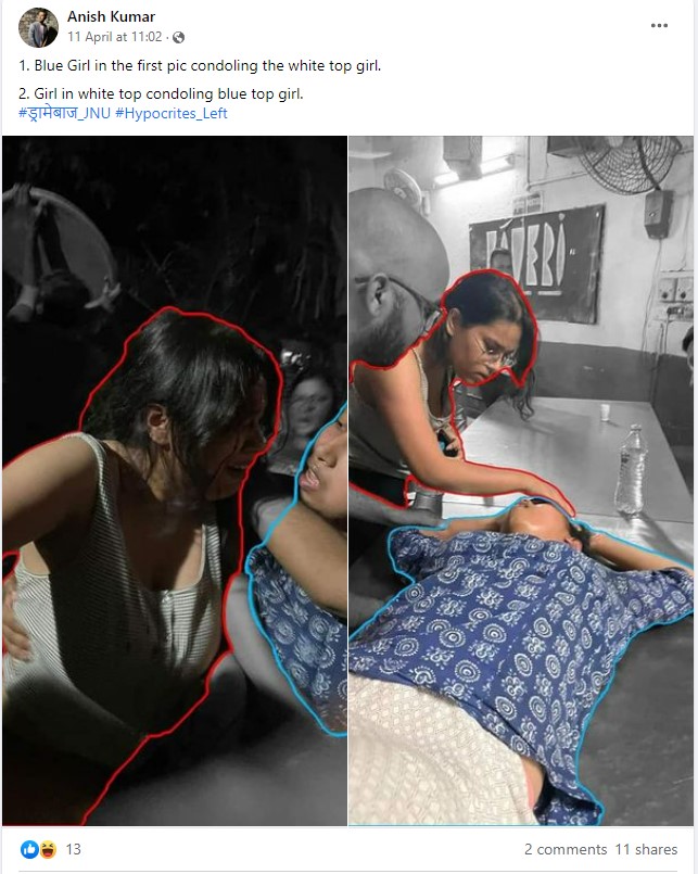 The Jawaharlal Nehru University, one of India’s premier institutes, was in the news once again, this time due to clashes allegedly over serving non-vegetarian food in the hostel mess. Soon after, videos and images showing the aftermath of the conflict emerged on social media platforms. In this backdrop, a set of images are being widely shared on social media alleging that the JNU students faked injuries. Newschecker found the claim to be untrue.