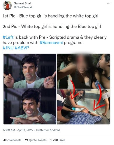 To verify the veracity of the claim that the JNU students faked injuries, Newschecker began by ascertaining the identities of the students seen in the viral images. We skimmed through several reports on the incident, and found a report by Aaj Tak, dated April 11, 2022, that carried the same set of images and quoted All India Students’ Association (AISA) Delhi chief, Madhurima Kundu identifying that the girl who suffered head injury is one Akhtarista Ansari.