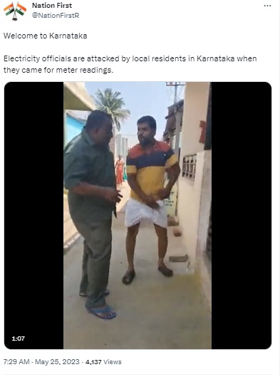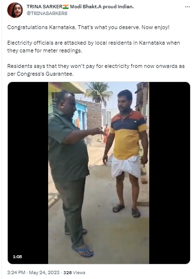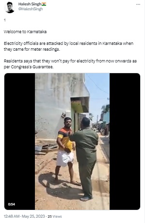 “…Electricity officials are being attacked by local residents in Karnataka, who are allegedly saying that they won’t pay for electricity from now onwards as per Congress’s Guarantee,” read a post.