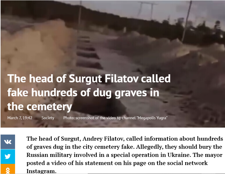 According to the translation of the Instagram post, it read “Disinformation attacks have also reached Surgut. For several days now, a fake video has been circulating on the Internet that the Surgut cemetery is allegedly being prepared to receive the soldiers who died during the special operation. I declare unequivocally that this information is a fake.