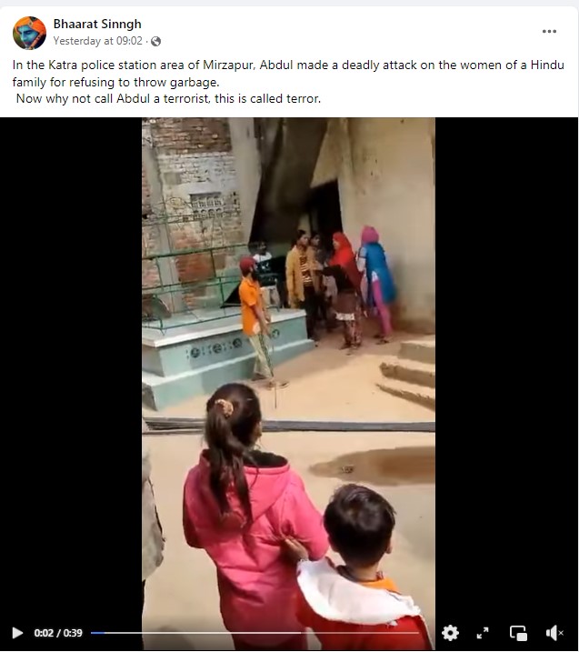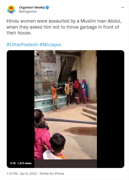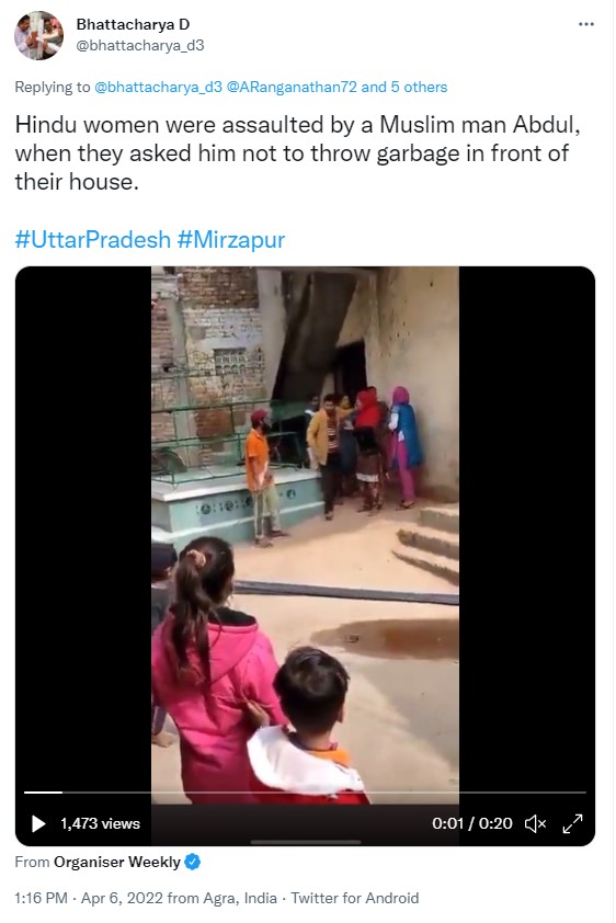News outlet Organiser Weekly, associated with the RSS, was among several Facebook users who shared the video claiming to show Muslim man ‘Adbul’ assaulting ‘Hindu women’ after “ they asked him not to throw garbage in front of their house,” in Uttar Pradesh’s Mirzapur.