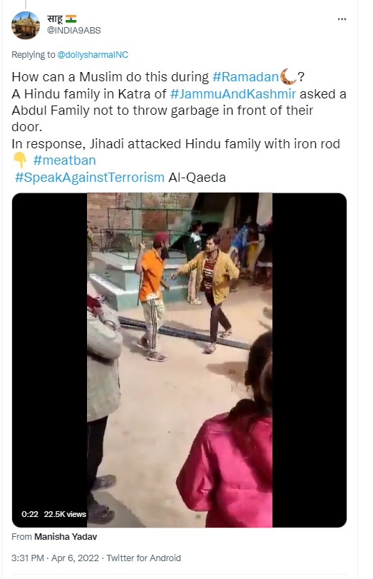 The same video is doing the rounds on Twitter with some users claiming that the incident took place in Jammu and Kashmir’s Katra.