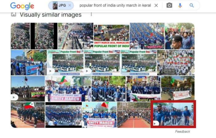 Taking a clue, we conducted Google reverse image search using the keyframes of the viral video along with the keywords “Popular front of India unity march in Kerala,” and found a video uploaded on the verified Facebook page of the People Front Of India in 2020 with the caption, “UNITY MARCH 2020 || BE THE SENTINEL OF FREEDOM || FEBRUARY 17 || POPULAR FRONT DAY 2020.”
