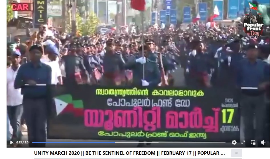 According to the official website of the PFI, “Popular Front Day is celebrated all over India to commemorate its formal launching as a national movement on 17 February 2006. The day witnesses large scale participation of people in the rallies and volunteer marches.”
