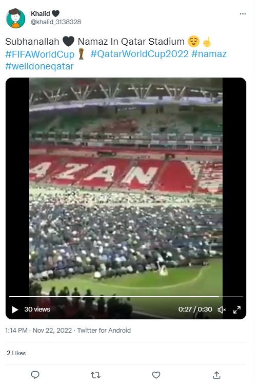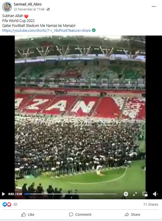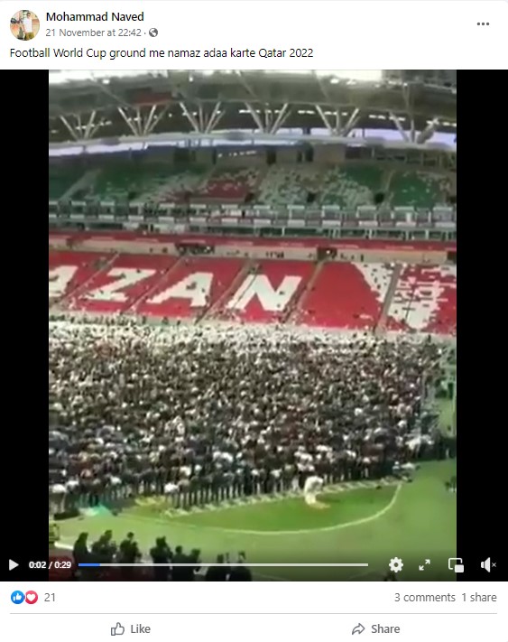 Viral posts claiming to show people performing Namaz at a football stadium during the ongoing FIFA World Cup are false.