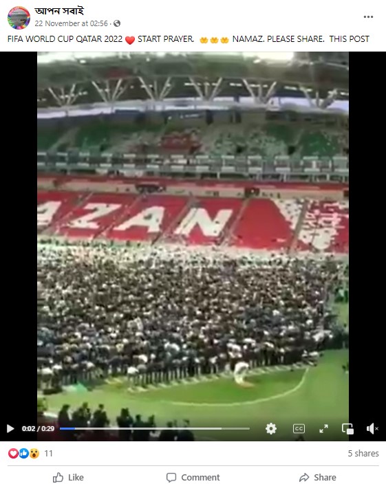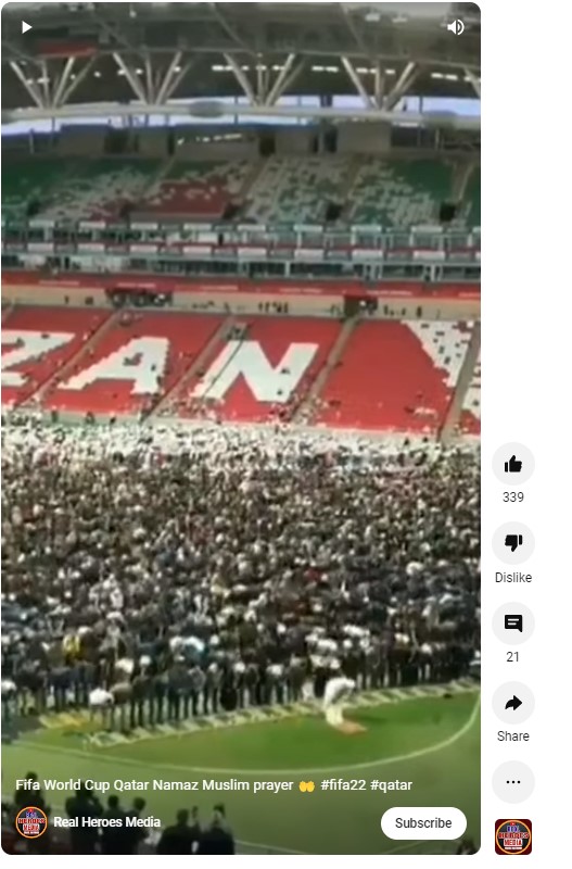 A video showing a large gathering of men performing Namaz inside a stadium is going viral on social media platforms. Those who shared the footage claim that it shows visuals from a stadium in Qatar where the FIFA World Cup is underway. Notably, Qatar is the first country in the Middle East and a Muslim nation to host a FIFA World Cup.