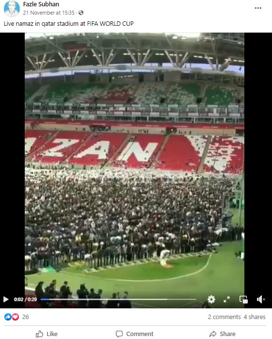 We could not independently verify the exact date when the video was shot. However, it dates back to at least 2019, and is not recent. Additionally, the viral video is actually from Kazan Arena stadium in Russia- explaining the word ‘Kazan’ seen in the stands-and not Qatar.