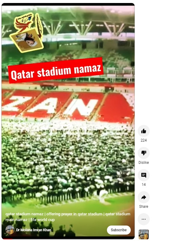 Further, a keyword search for “Namaz, “ Kazan Stadium,” & ”Russia” on YouTube yielded a video uploaded on the verified channel of The message of Islam, dated June 10, 2019, titled ‘Praying In Stadium | Namaz in Kazan Stadium Russia.’ On analysing the video, we could conclude that it displayed visuals from the same event as seen in the viral clip.