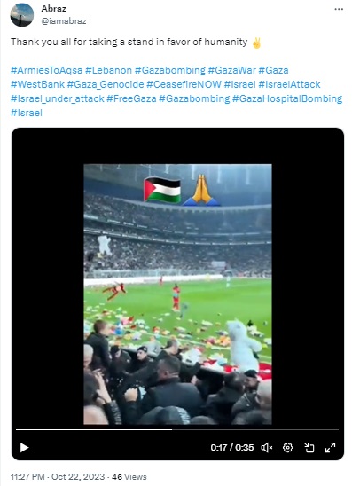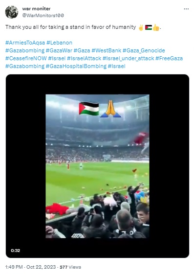 Viral video claimed to show football fans showering the pitch with soft toys in a show of solidarity for the children affected by the Gaza air strikes is actually of a mass donation drive organised for the children in earthquake-hit Turkey in February 2023.