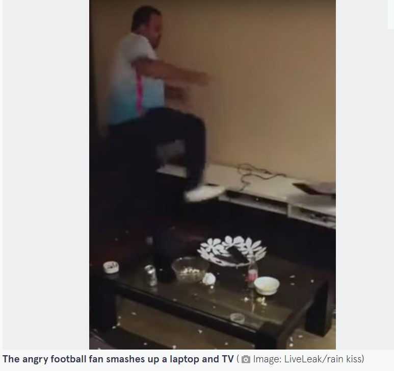 A Daily Mail report, dated June 16, 2016, also carried the video of a Turkish football fan smashing his television set “after his wife pranks him by repeatedly turning off the TV as he tries to watch EURO 2016 game.”