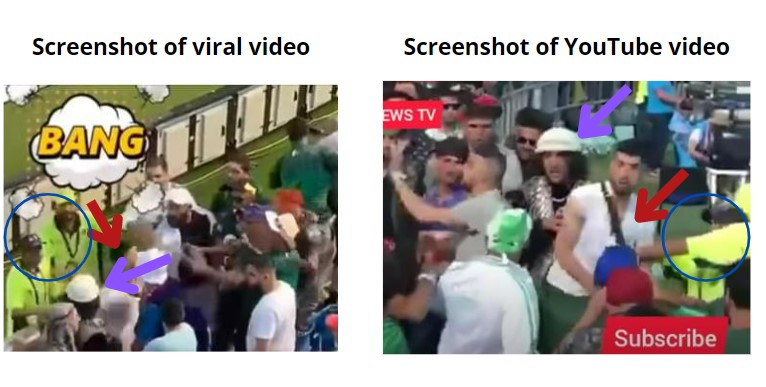 Newschecker carefully analysed the video and was able to spot certain men wearing Pakistani cricket jerseys. Taking a clue, we conducted a keyword search for “Pakistan cricket fans fight in stadium” on YouTube which led us to a video by HSE Murtaza, dated June 30, 2019, titled ‘AFGHANISTAN 🔥CROWD FIGHTING WITH 🇵🇰 PAKISTANI Cricket FANS . CROWD Fight Pakistan vs Afghanistan.’