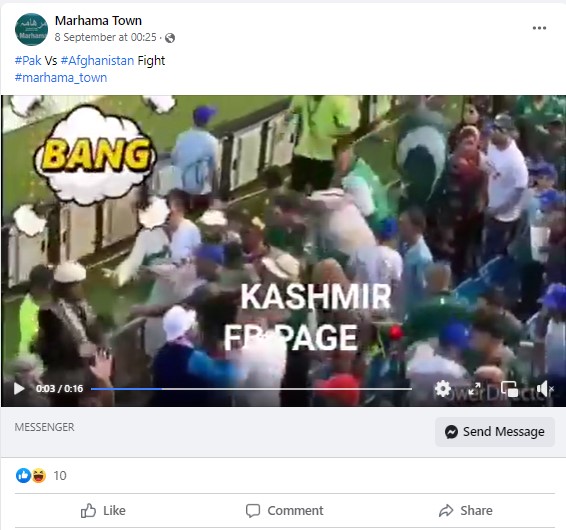 Several Facebook users shared the viral video following Pakistan victory over Afghanistan on September 7 with the caption “#Pak Vs #Afghanistan Fight.”