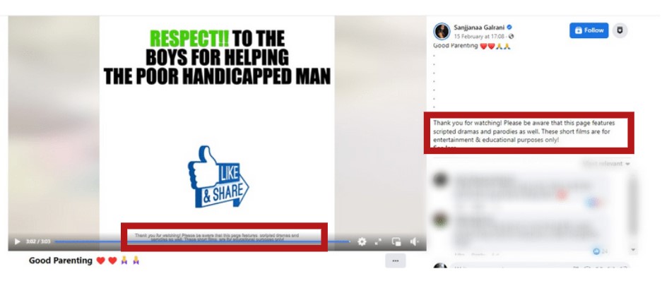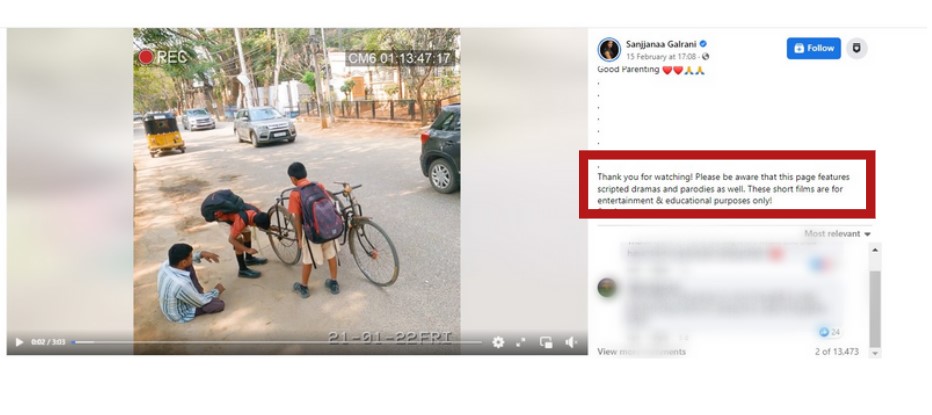 We continued our investigation and found that the video was posted on the official page of actress Sanjjanaa Galrani on February 15, 2022 with the caption “Good Parenting.” She had posted the video with the disclaimer, “Thank you for watching! Please be aware that this page features scripted dramas and parodies as well. These short films are for entertainment & educational purposes only!”
