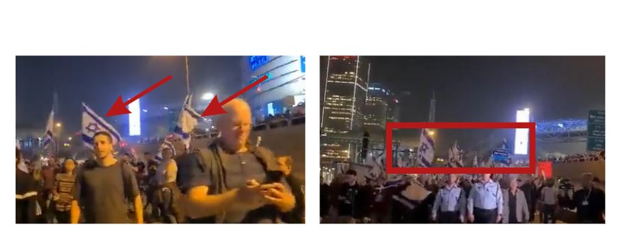 On carefully analysing the video, we spotted several protesters carrying the national flag of Israel. Additionally, the sky-blue colour attire of the two men marching in the middle resembled the official uniform of the Israeli police.