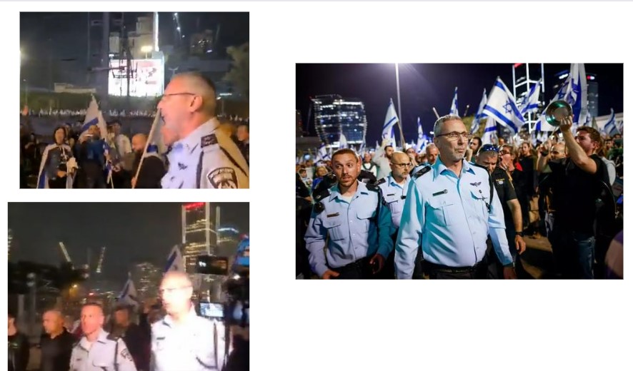 There was no mention of the Police Chief joining the protest against Netanyahu.