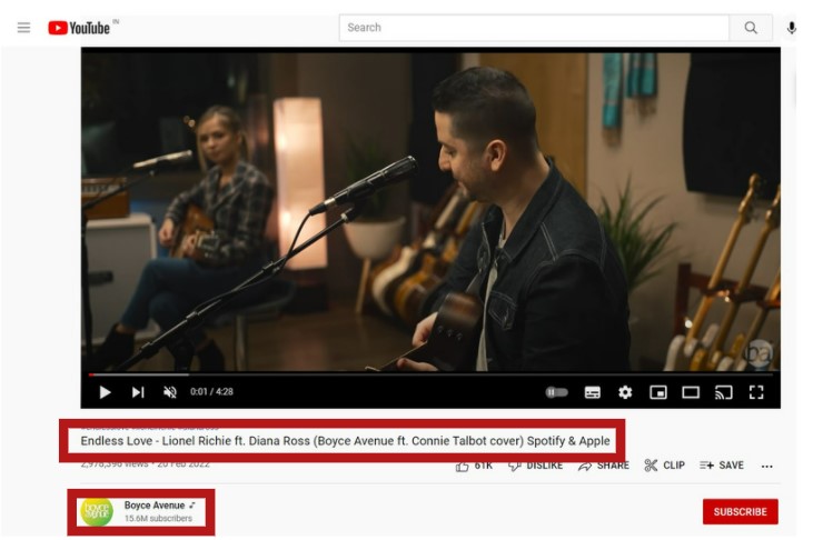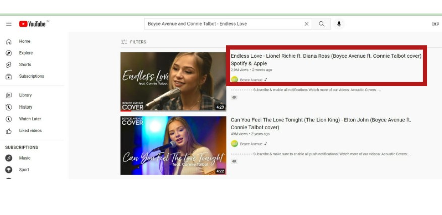 Taking a clue, we searched keywords ‘Boyce Avenue and Connie Talbot – Endless Love’ and found a video uploaded on the official YouTube channel of Boyce Avenue on February 20, 2022 with the title ‘Endless Love – Lionel Richie ft. Diana Ross (Boyce Avenue ft. Connie Talbot cover) Spotify & Apple.’