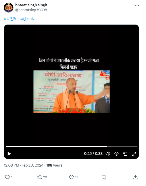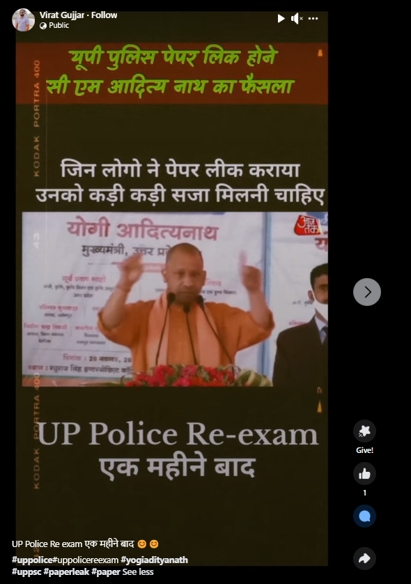Hence, 2021 video of UP CM Yogi Adityanath announcing cancellation of UPTET exam following a paper leak, and ordering a reexamination has been falsely linked to the recently held police constable exam in the state.
