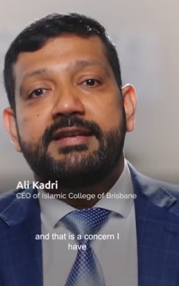 We also noticed that the viral footage carried a snippet of a man identified as “Ali Kadri, CEO of Islamic College Brisbane ” speaking to the camera, and the logo of SBS in the last frame of the video.