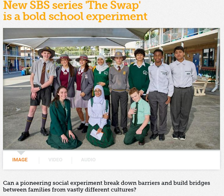 It featured a photograph of 11 students, some of whom were seen in the viral footage. The article elaborated on a “three-part documentary series The Swap follows what happens when 12 students and families from very different cultures, and religions backgrounds are thrown into each other’s worlds. Exploring whether a ground-breaking social experiment encompassing a school swap can make a real difference in breaking down social barriers and building greater acceptance, respect and understanding between diverse cultural communities, The Swap also observes the possibility of the experiment backfiring as cultures collide, with the potential for controversies to flare.”