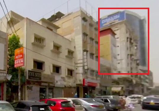 A comparison of screen grabs of the viral video (left) with the images of Sanam Boutique and the nearby building on Google Maps (right), further confirms that the video is from Tariq Road in Karachi.