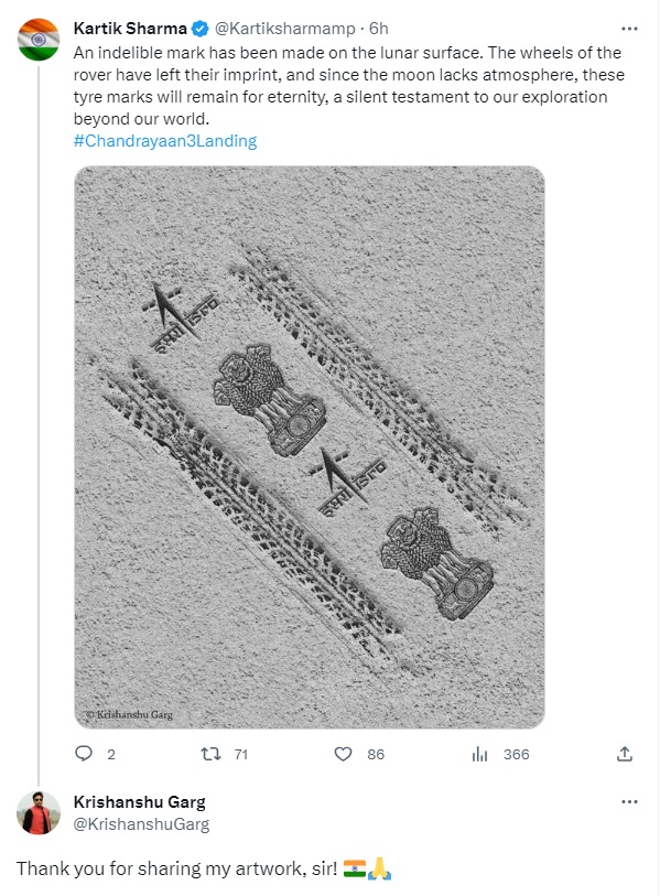 We then reached out to Krishanshu, a space enthusiast from Lucknow, who once again reiterated that the image was an artwork and not the actual imprint of the wheels of the Pragyaan rover on the lunar surface.