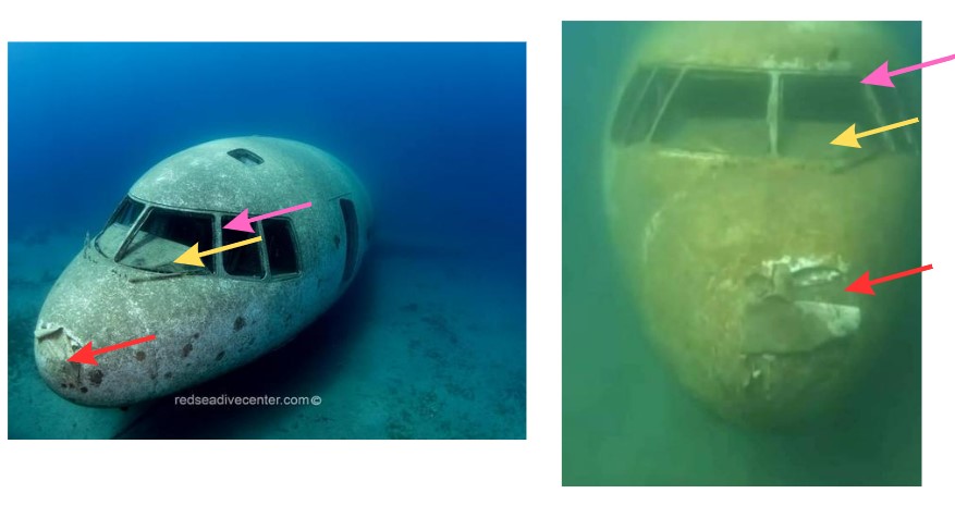 We compared one of the images posted by @redseadivecenter with the viral photograph, and found several similarities between the planes.