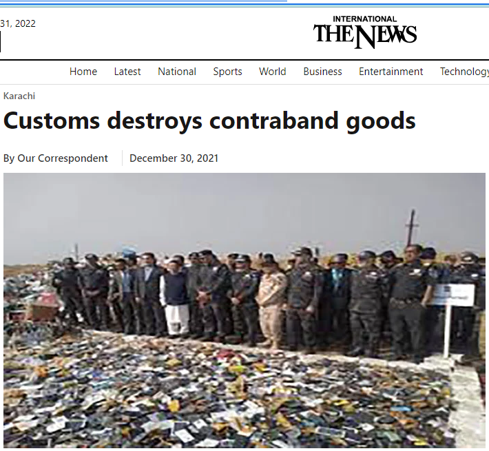 The video for December 30, 2021 is titled ‘Pakistan Customs Destruction Ceremony’.