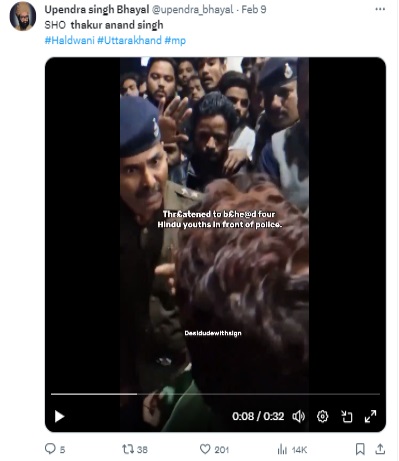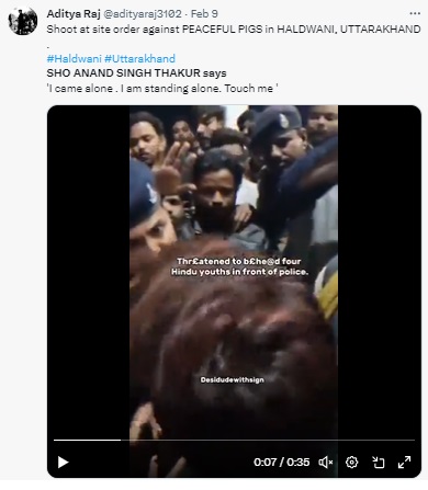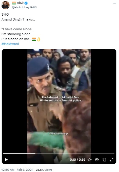 Amid the violent clashes that broke out in Haldwani, Uttarakhand, on February 8, during the demolition of a madrasa and mosque in an anti-encroachment drive, resulting in the deaths of at least six, a video, purportedly from Haldwani, has gone viral showing a police officer standing his ground against an aggressive mob.