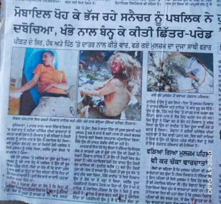 According to the article, a Sikh youth was beaten up by the local people on charges of theft from a factory in Ludhiana. The young man’s turban had come off in the beating, after which he was dragged by the hair.