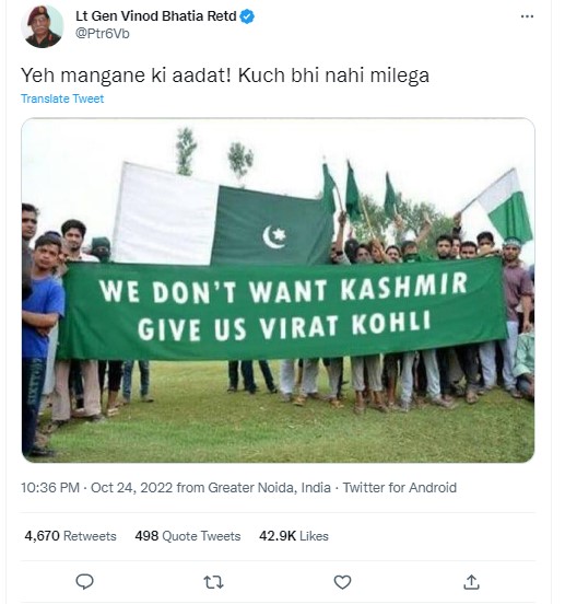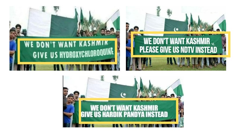 Further, a keyword search for, “‘We don’t want Kashmir. Give us Virat Kohli,” on Facebook yielded several images the same as the viral photograph with the only difference being the text on the banner.