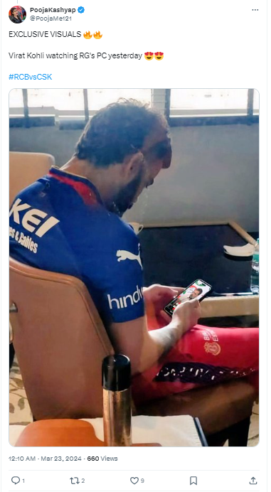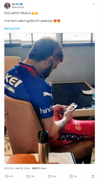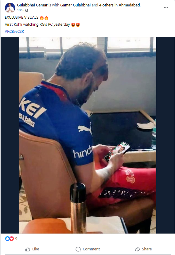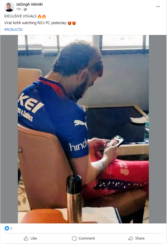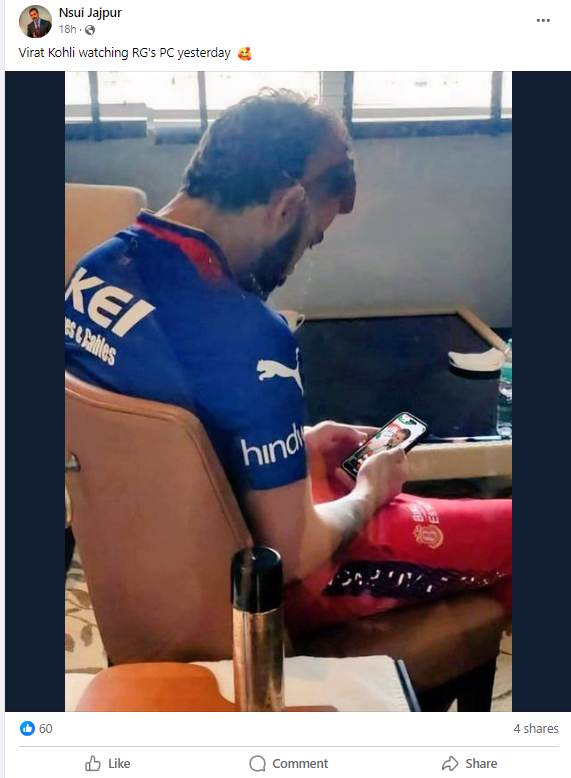Notably, the original picture was shared by multiple fan pages of Kohli on March 21, 2024 like this, this and this. While we observed that the edited picture with the caption “Virat Kohli watching RG’s PC yesterday,” was posted on Facebook and X on March 22, 2024.