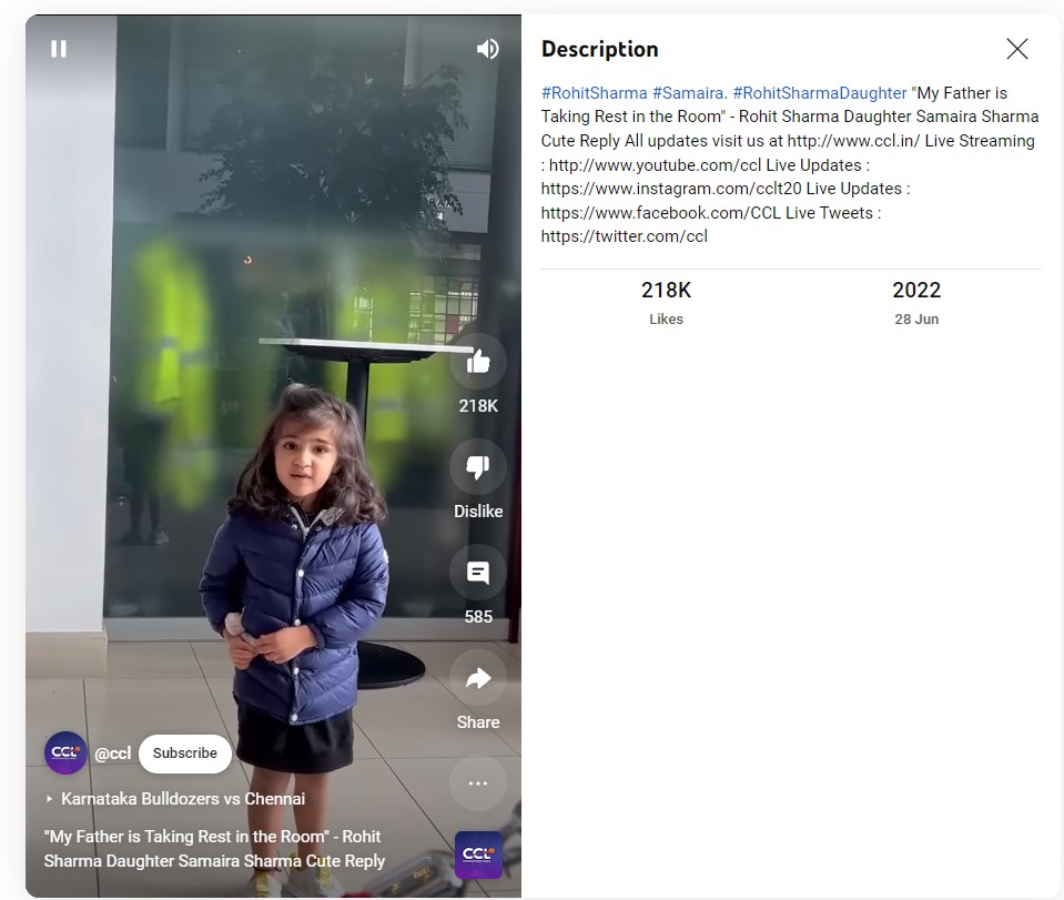 Thus, the viral video featuring Rohit Sharma’s daughter Samaira is not recent and does not pertain to the aftermath of the World Cup 2023. Instead, it was originally uploaded on the Celebrity Cricket League (CCL) YouTube channel in June 2022.