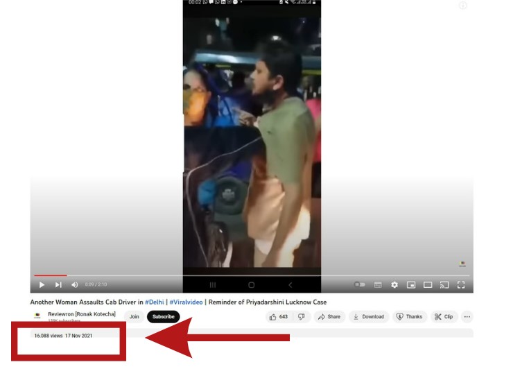 A keyword search for “woman,” “assaults,” “driver,” & “public” on Google led us to a YouTube video by @reviewron, dated November 17, 2021. Carrying the viral footage, it stated, “In a chilling reminder of the Priyadarshini case from Lucknow, yet another video has surfaced, this time supposedly from Delhi. In this undated footage, a woman wearing a blue branded Vivo T-shirt is first seen hitting a cab driver…The incident is said to have happened last week at Block-22 on Kasturi Lal Anand Marg of West Patel Nagar.”