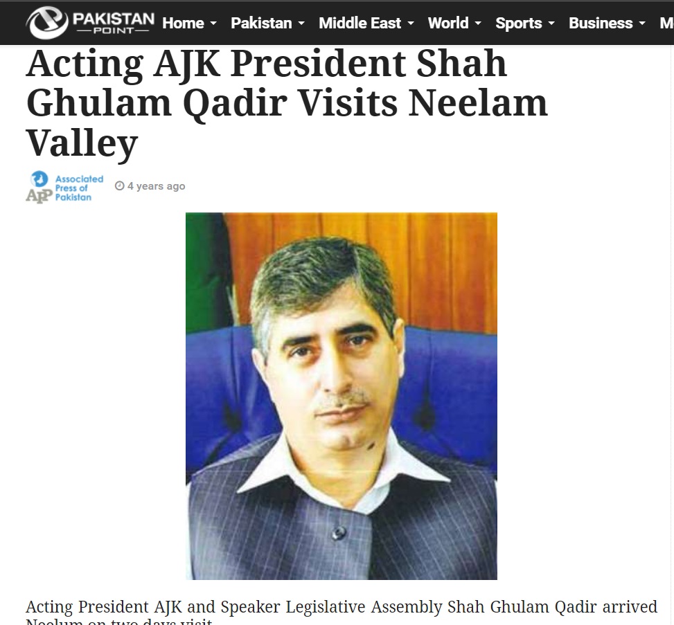 On researching more about Neelam Valley, Newschecker found that the region falls in the Pakistan Occupied Kashmir. He further makes reference to one ‘Shah Ghulam Qadir’ which on searching further, we found to be a reference to the acting President of POK, Shah Ghulam Qadir.
