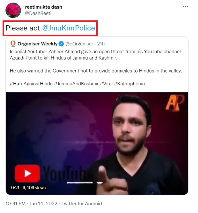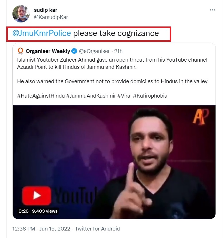Sharing the tweet, several users tagged the J&K police, the PMO, the HM, prominent leaders in J&K and journalists and media houses, indicating that they believe the YouTuber to be based in Jammu and Kashmir.